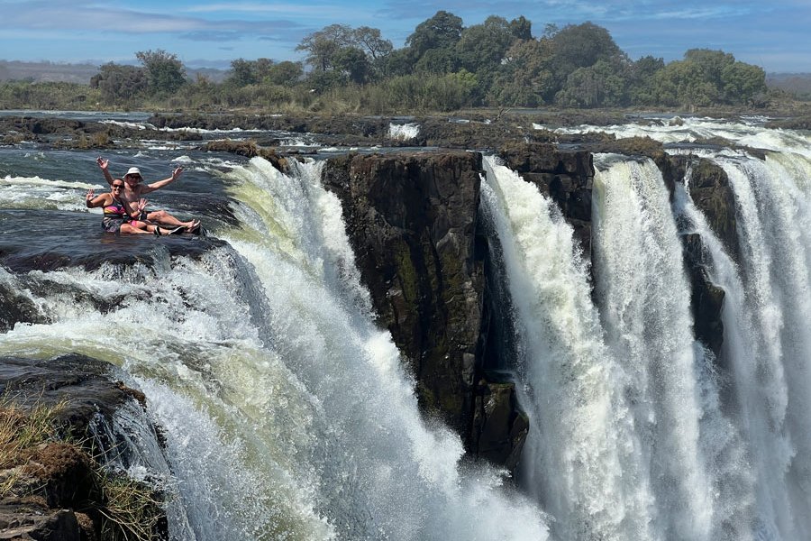 Doug and Corinne recently visited Zimbabwe and had this advice. "Many travelers know about Devil’s Pool, but have you heard of Cataract Pool on the Zimbabwe side — 100 yards away. Having done both, we prefer Cataract Pool."