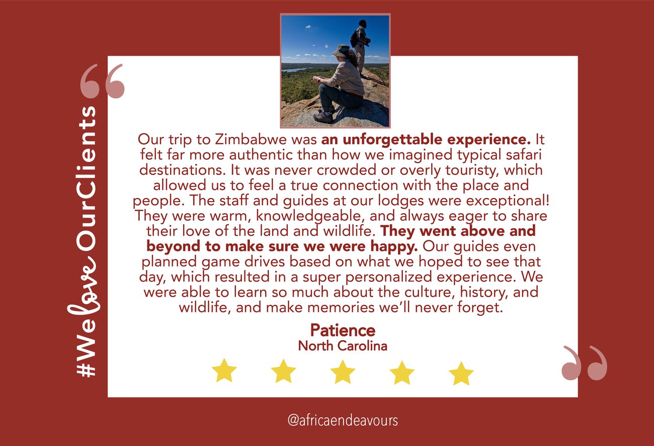 Book your safari to Zimbabwe before 31 October and receive $600 discount off the total cost of the trip.